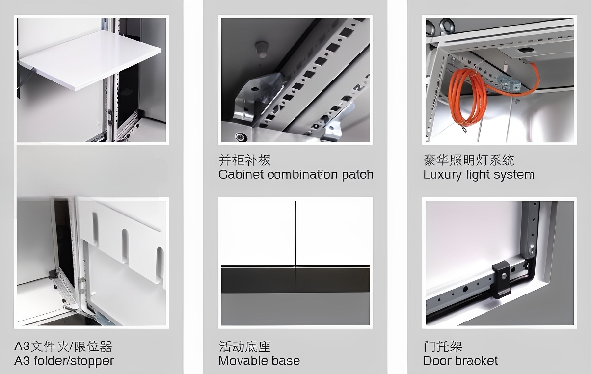 控制柜特殊的門板方管加強(qiáng)系統(tǒng)可以用螺絲固定在門板上,便于拆卸